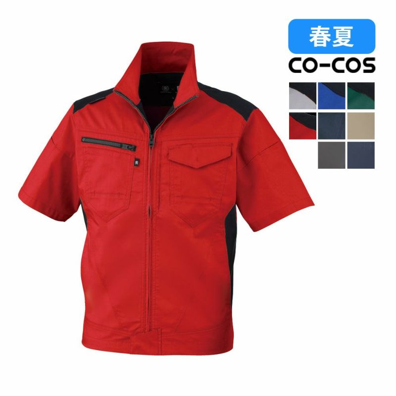 AG-3080 ストレッチ半袖ブルゾン CO-COS コーコス 帯電防止素材 ストレッチ 反射 吸汗速乾 接触冷感 UVカット 作業着 作業服