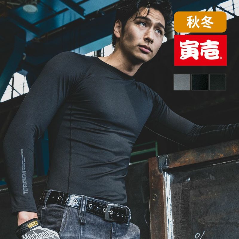長袖クールネックTシャツ 7951-617 寅壱 TORA 裏起毛 保温 静電 UVカット 再帰性反射 インナー コンプレッション 作業服 作業着