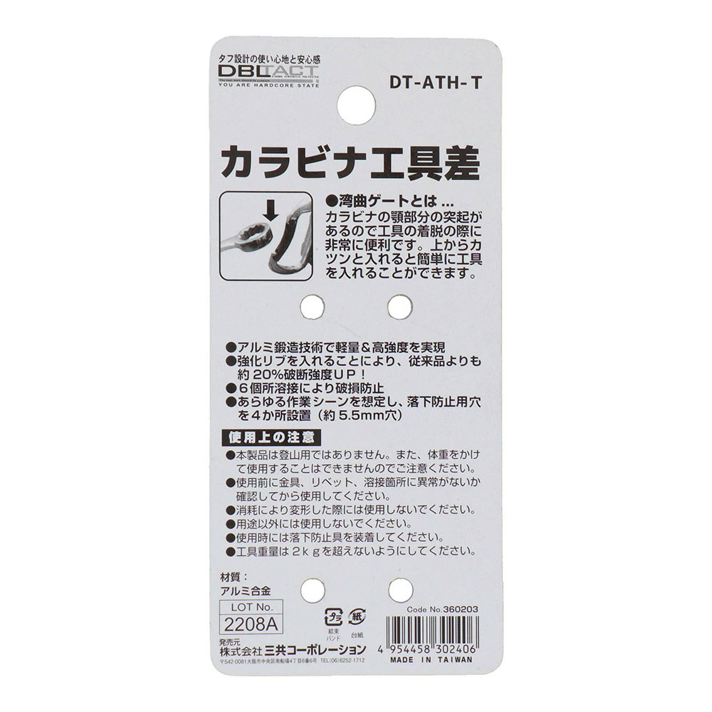 【即納】カラビナ工具差し(チタン) DT-ATH-T カラビナ アルミ 2ツ穴 固定 工具 差 湾曲ゲート ツール 三共コーポレーション 工具ホルダー 工具 作業着 作業服