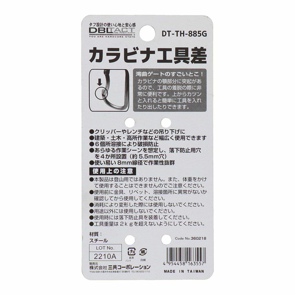あらゆる作業シーンを想定し、落下防止用穴を4か所設置(約5.5mm穴)
