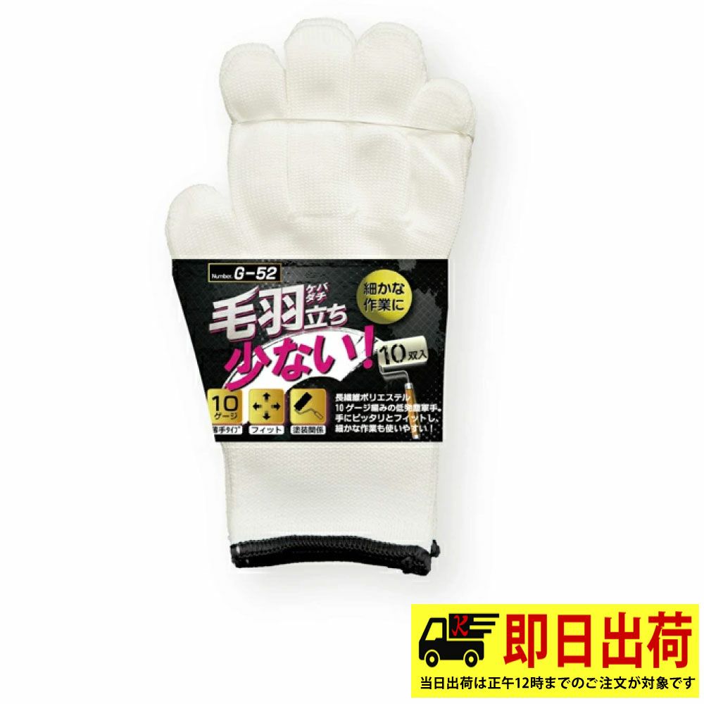 【即納】G-52 毛羽立ちが少ない軍手 10G 10双入 おたふく手袋 軍手 ポリエステル 作業着 作業服