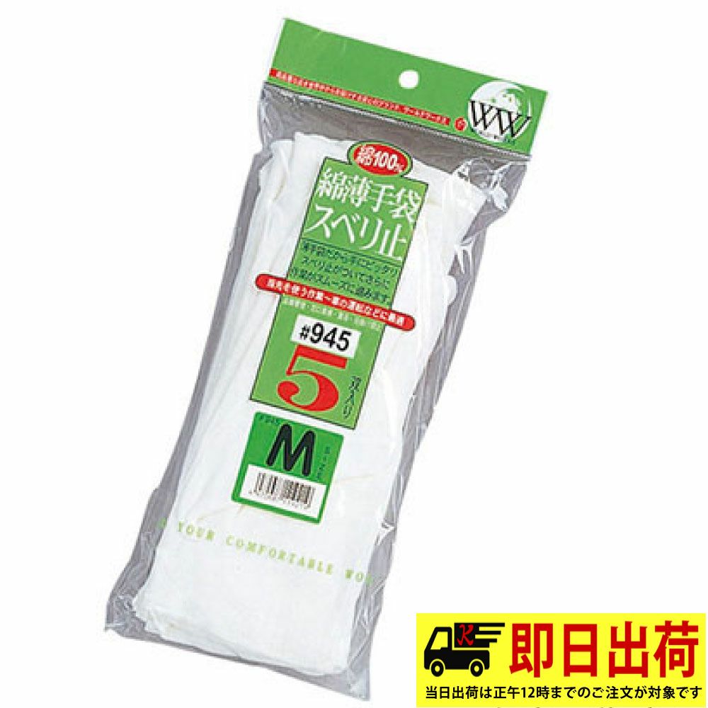 【即納】WW-945 綿薄すべり止手袋 5双組 おたふく手袋 スムス マチ付 手袋 作業着 作業服