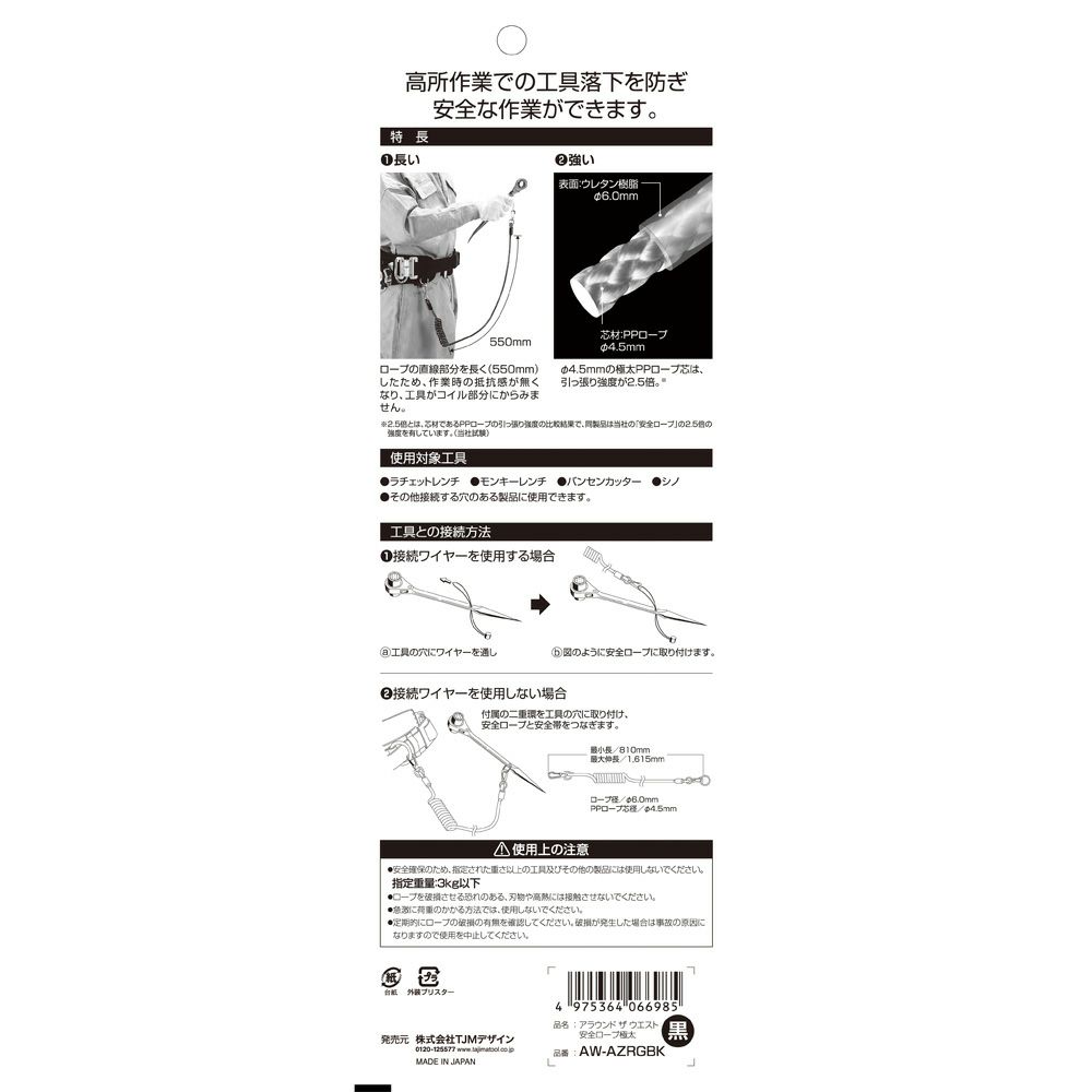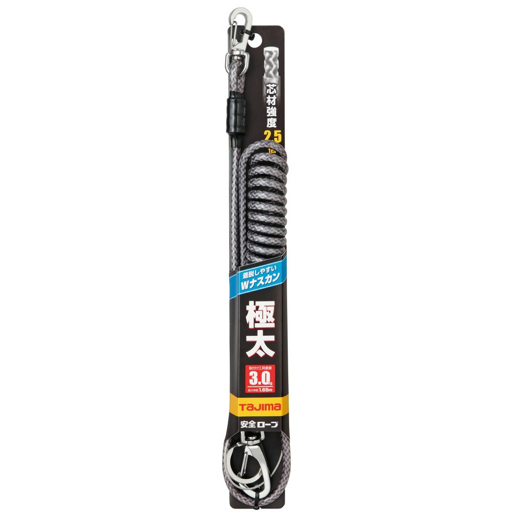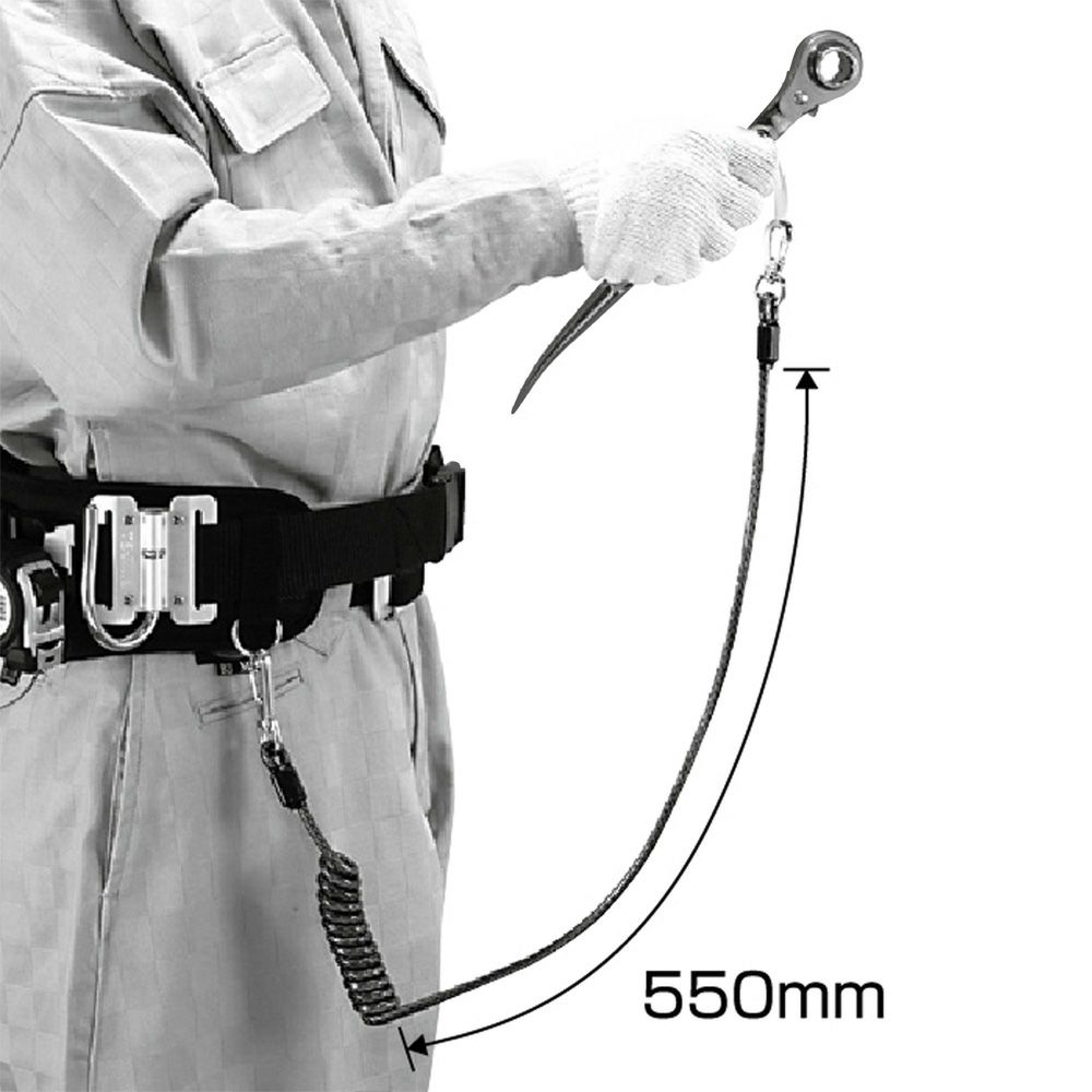 ・ロープの直線部分を長く(550mm)したため、作業時の抵抗感が無くなり、工具がコイル部分にからみません(最大1600mmまで伸びます)
