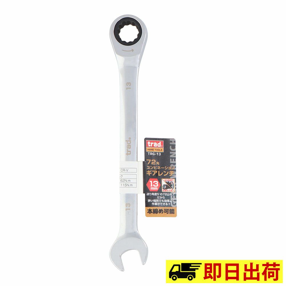 商品情報 サイズ 13mm 全長 180mm 重量 85g 最大トルク値 (ラチェット) 115N.m 最大トルク値 (スパナ) 62N.m 材質 本体:CR-V(クロームバナジウム鋼) ご注意 モニターの発色の具合によって実際のものと色が異なる場合があります。