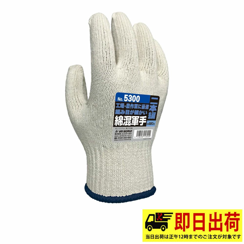 【即納】5300 ユニワールド綿混軍手 二本編 10ゲージ 綿混 軍手 作業着 作業服